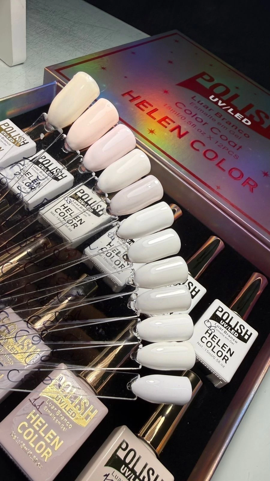 Kit Colección 12 lunar blanco esmaltes Semipermanente 15ml Helen Color ‼️LIBRES DE TPO‼️